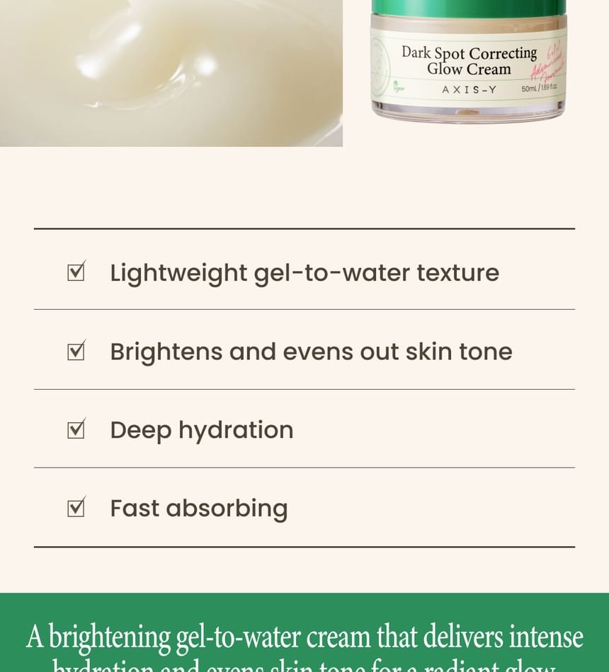AXIS – Y Dark Spot Correcting Glow Cream offers a multi-faceted approach to skin brightening and correction. Its primary benefits include: