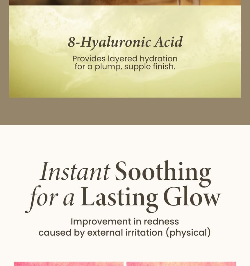 - Soothes and calms irritated skin, minimizing redness and inflammation.