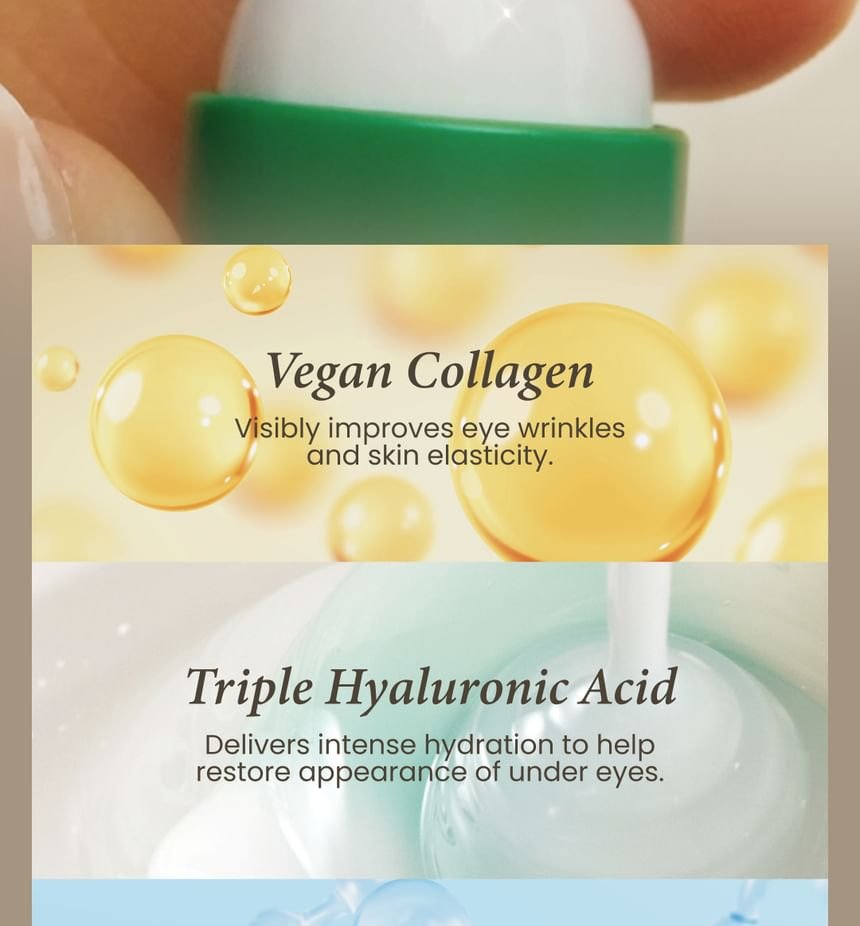AXIS-Y Vegan Collagen Eye Serum visibly firms and hydrates delicate under-eye skin with plant-based collagen and five types of hyaluronic acid. Reduce the appearance of fine lines and dark circles for a brighter, more youthful look. This lightweight serum delivers deep nourishment without stickiness, powered by naturally-derived ingredients.