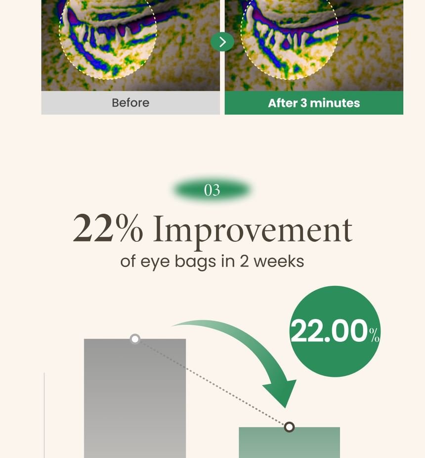 • Reduces Puffiness: Helps to drain excess fluid and minimize swelling around the eyes.