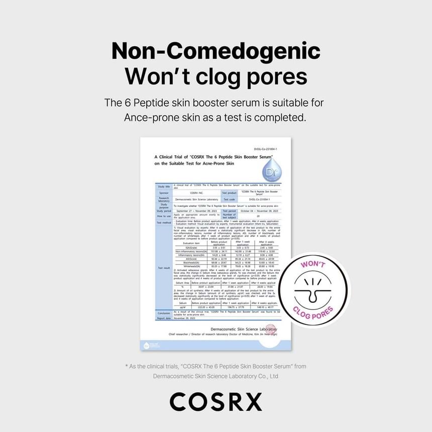 After cleansing and toning, apply 2-3 drops of COSRX The 6 Peptide Skin Booster to the face and neck. Gently pat into the skin until fully absorbed. Follow with your moisturizer. For best results, use both morning and night. A little goes a long way! We recommend incorporating this booster into your routine after serums and before heavier creams. Patch test before first use to ensure compatibility with your skin.