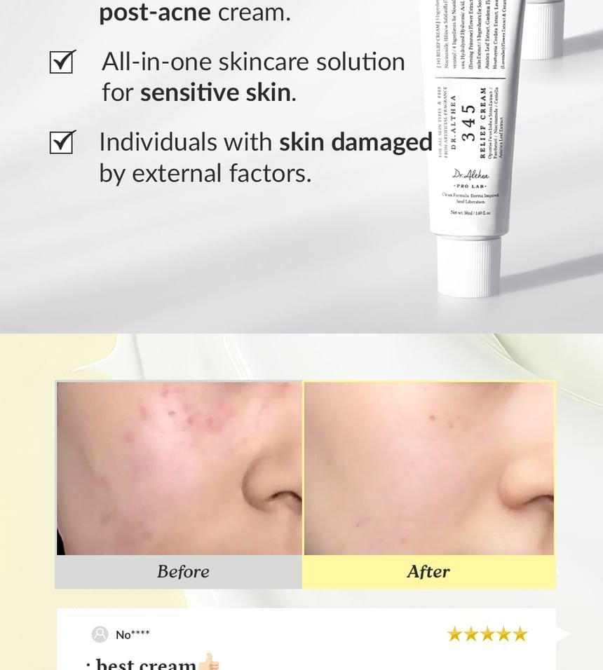Dr. Althea – 345 Relief Cream is your answer to instantly calmed, soothed, and revitalized skin. Developed by dermatologists, this unique cream is designed to address a multitude of skin concerns, from redness and irritation to dryness and sensitivity. More than just a moisturizer, 345 Relief Cream provides a powerful yet gentle solution for compromised skin barriers, offering immediate and long-lasting comfort. Experience the difference of a cream formulated with science-backed ingredients and a dedication to skin health.