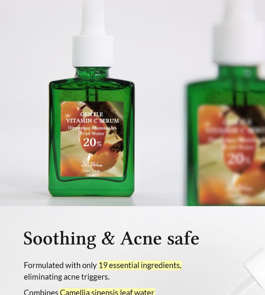 Reveal a brighter, more even-toned complexion with Dr. Althea’s Gentle Vitamin C Serum. This lightweight, fast-absorbing serum is formulated to deliver the powerful benefits of Vitamin C without the irritation often associated with traditional Vitamin C products. Designed for all skin types, even sensitive skin, our serum combats dullness, hyperpigmentation, and the visible signs of aging, leaving you with a healthy, luminous glow. We understand that Vitamin C can be harsh, which is why we’ve prioritized gentleness in our formulation, ensuring maximum efficacy with minimal discomfort. Say goodbye to uneven skin tone and hello to a revitalized, radiant you!