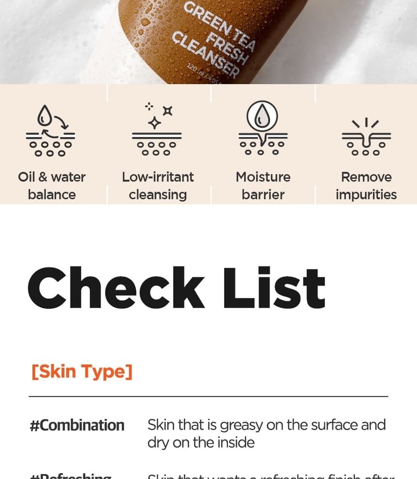 Dispense a small amount of the Isntree Green Tea Fresh Cleanser into your palm. Add water to create a rich lather and gently massage onto damp skin in circular motions. Rinse thoroughly with lukewarm water. Follow with your favorite Isntree toner and serum for optimal results. Use morning and night as part of your daily skincare routine.