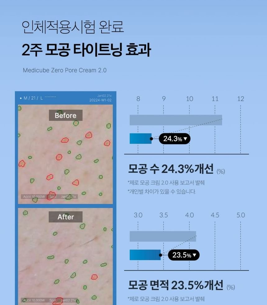 After cleansing and toning, apply a moderate amount of Medicube Zero Pore Cream 2.0 to the entire face, focusing on areas with visible pores. Gently massage into the skin using upward circular motions. Use morning and night for optimal results. For best results, incorporate into a complete skincare routine including cleansing, toning, and sun protection during the day. A patch test is recommended for those with particularly sensitive skin.