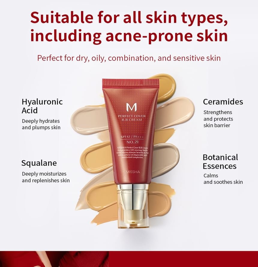 The effectiveness of the M Perfect Cover BB Cream lies in its carefully selected ingredients. It features a blend of botanical extracts and functional ingredients designed to nourish and protect the skin. Key components include:
