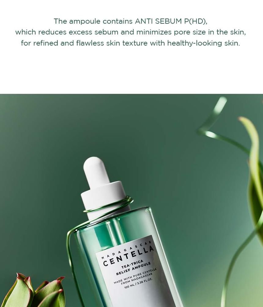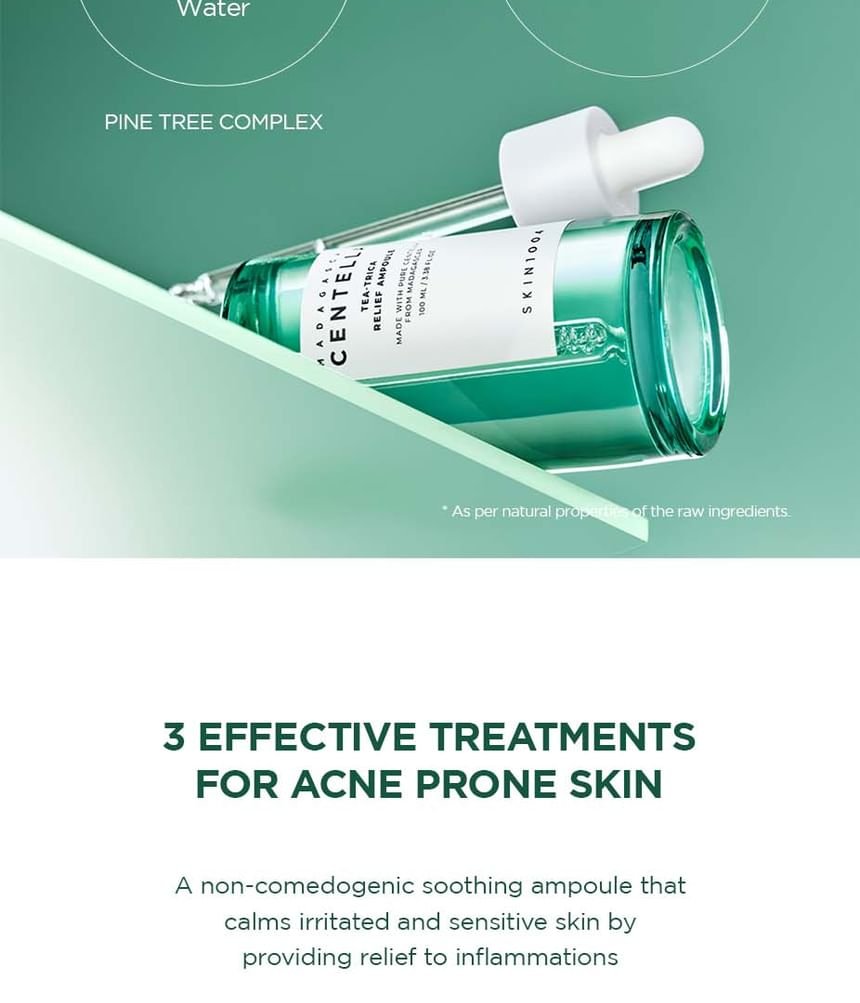 After cleansing and toning, apply 2-3 drops of the SKIN 1004 Madagascar Centella Tea-Trica Relief Ampoule to the affected areas or the entire face. Gently pat into the skin until fully absorbed. Follow with your moisturizer. For best results, use morning and night. If using multiple skincare products, apply this ampoule after your toner and before thicker creams or lotions. For targeted treatment, apply a slightly larger amount directly to blemishes or areas of inflammation. Consistent use will yield optimal results, promoting a calmer, clearer, and healthier complexion.