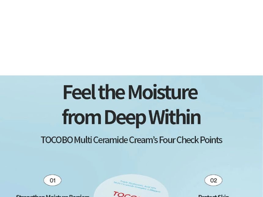 After cleansing and toning, apply a moderate amount of TOCOBO Multi Ceramide Cream to the face and neck. Gently massage into the skin using upward circular motions until fully absorbed. For optimal results, use morning and night. This cream can also be used as the last step in your skincare routine to seal in hydration and protect your skin barrier. A little goes a long way – start with a pea-sized amount and adjust as needed. Consider layering with a facial oil for an extra boost of nourishment, especially during drier months.